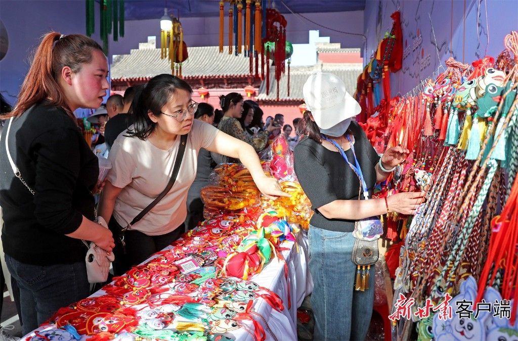 在天水举行的甘肃文创非遗市集展销活动中庆阳香包受到游客的青睐。