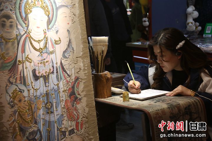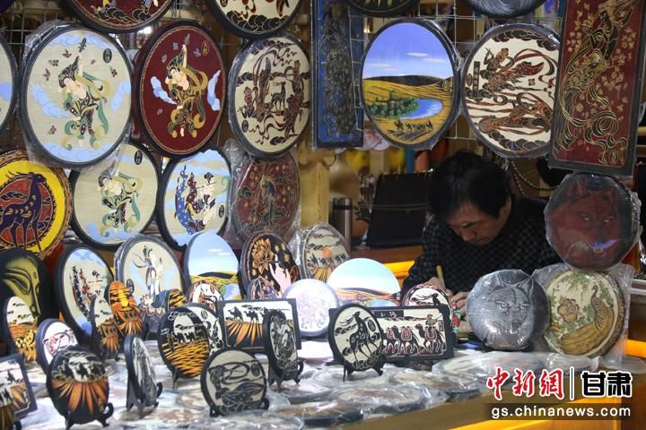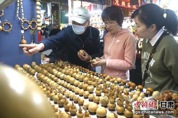 清明假期,甘肃省敦煌市迎来旅游热。众多游客走进敦煌夜市,欣赏选购特色旅游工艺品,品味敦煌文化艺术,消费市场火热。张晓亮 摄
