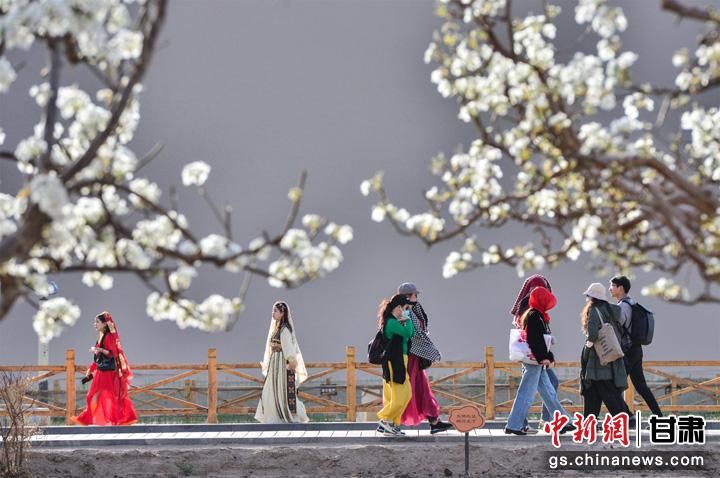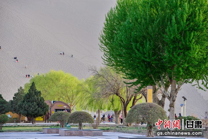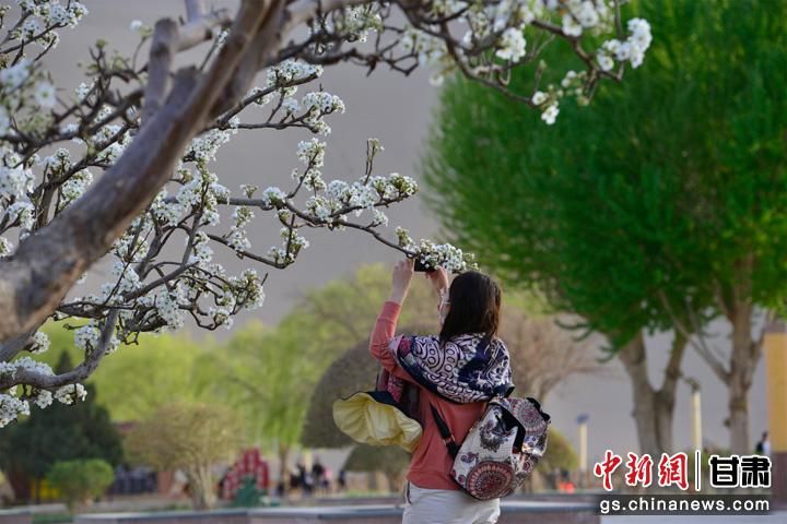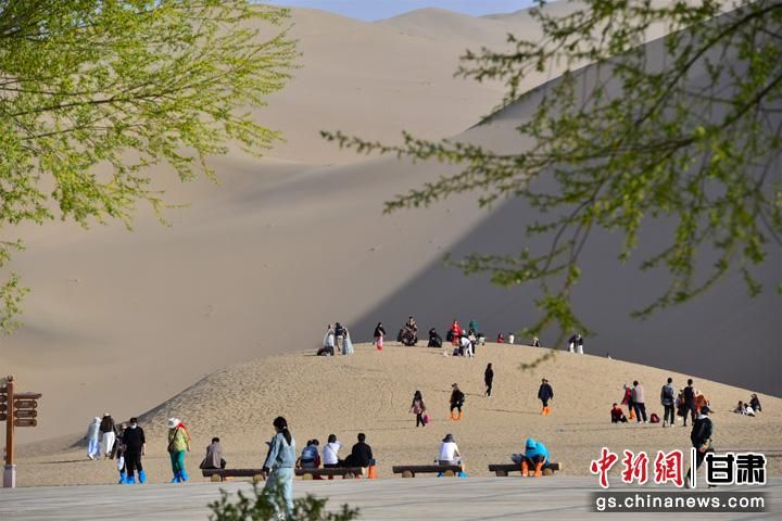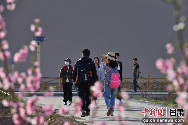 4月初,甘肃敦煌春暖花开,处处洋溢着春天浪漫迷人的气息。鸣沙山下桃李芬芳,吸引了众多游客前来观赏醉人的大漠春光。王斌银 摄