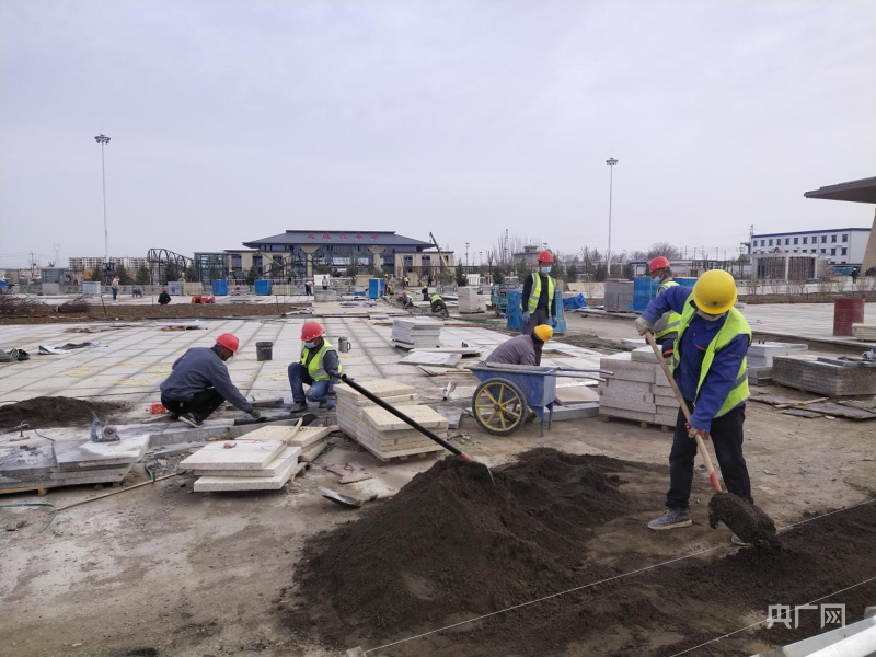 工人正在铺砖(央广网发 凉州区融媒体中心供图)