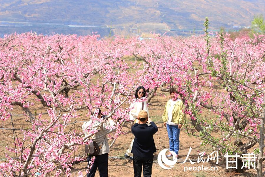 莺飞草长、春意渐浓,甘肃省天水市秦安县漫山遍野的桃花迎春绽放。桃花粉白娇嫩、灿若云霞,远远望去如粉色纱幔覆盖山头。