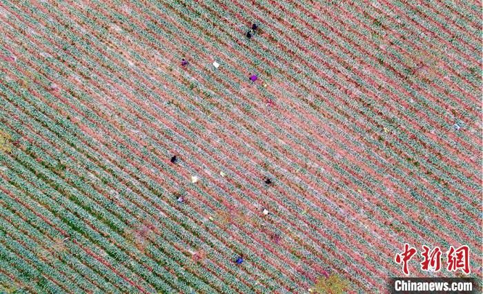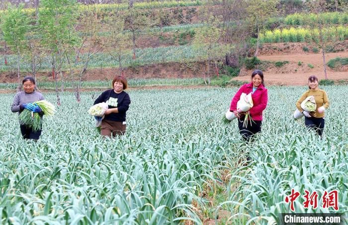 蒜农正在蒜田里收获蒜薹。刘建军 摄