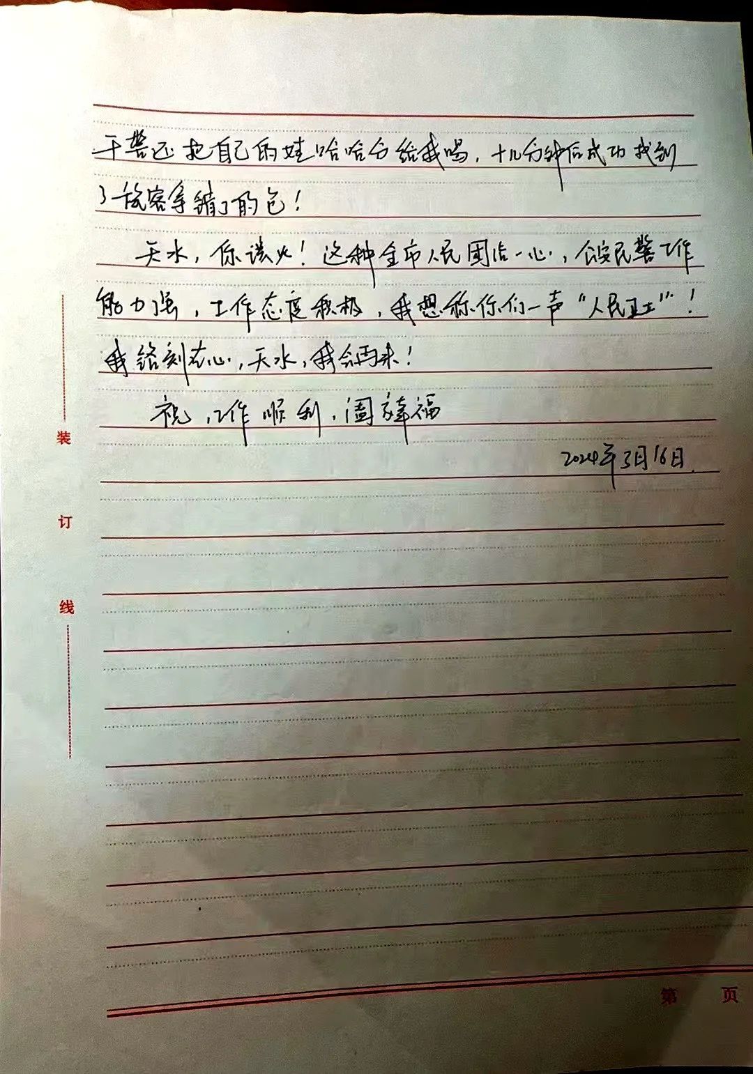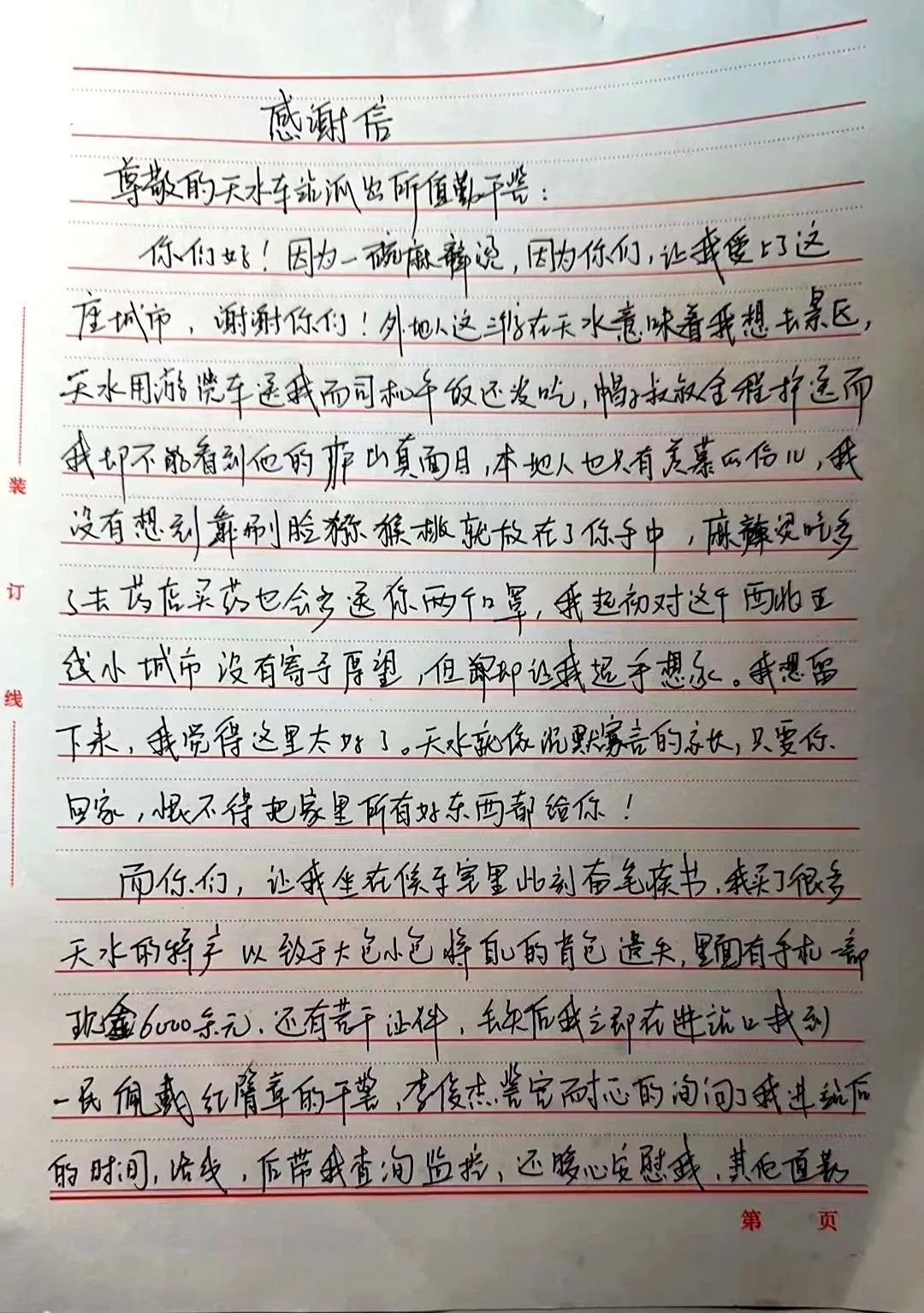 “旅游打卡过很多城市,唯独在天水,我不仅看到了美丽的风景,更感受到了天水人民的温暖和善良。你们的帮助让我感受到了家的温暖,也为我这次的旅程增添了一份难忘的记忆,这份感动我会永远铭记于心。谢谢你们,谢谢你们让我感受到了不一样的美好!”