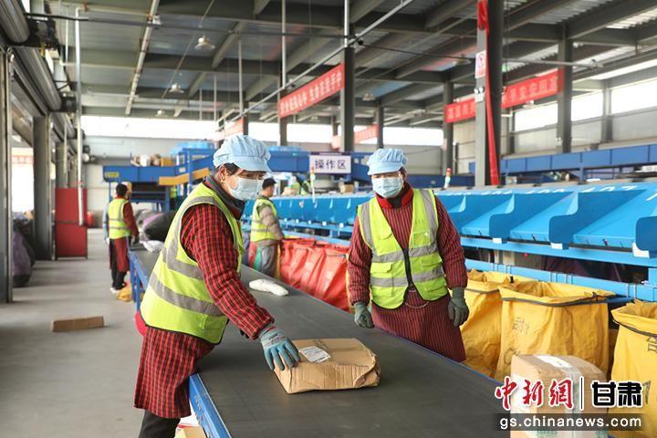 2024年4月10日,环县电商产业园中来自全国各地的包裹正在被智能化分拣。乔洁 摄