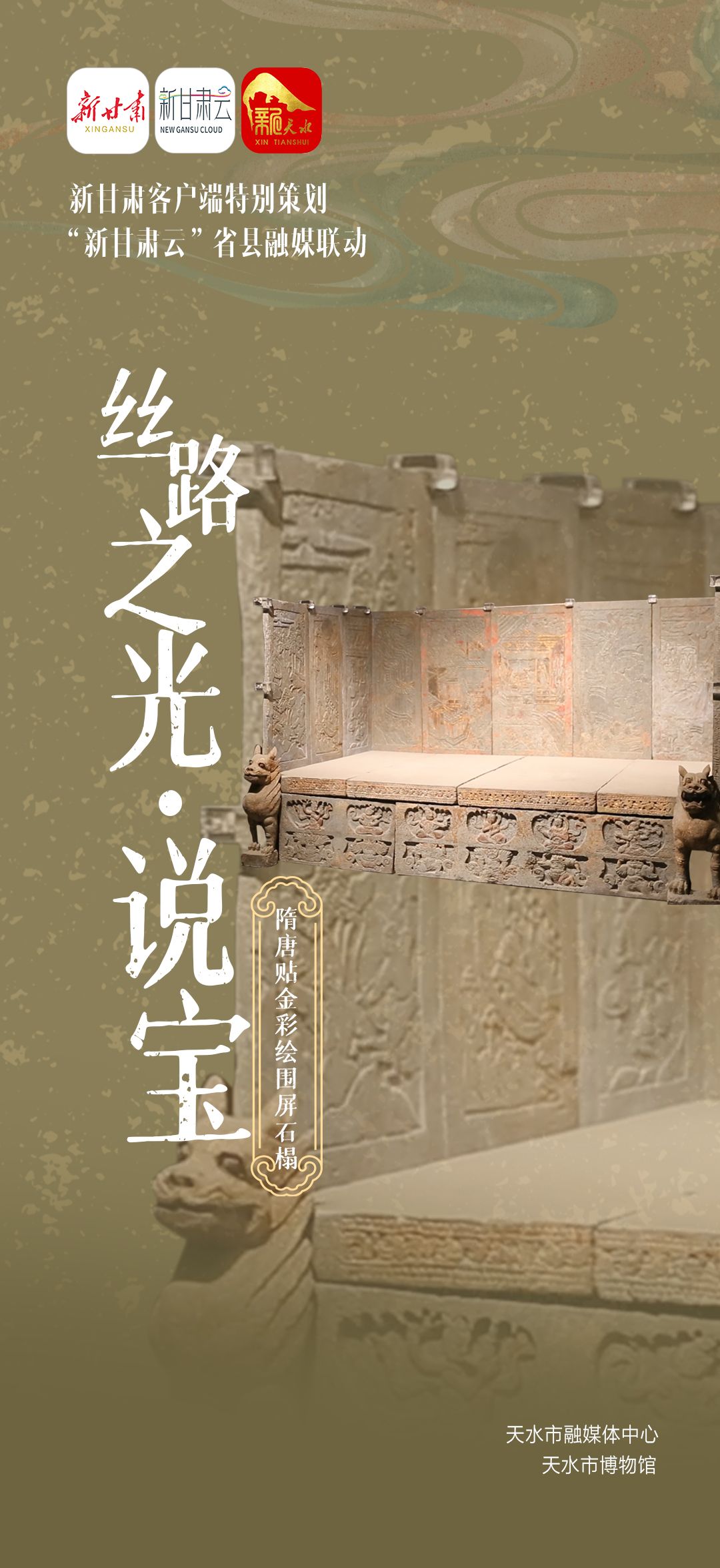 本期【丝路之光·说宝】走进羲皇故里,一起看看天水市博物馆的“镇馆之宝”——隋唐贴金彩绘围屏石榻带来的震撼。