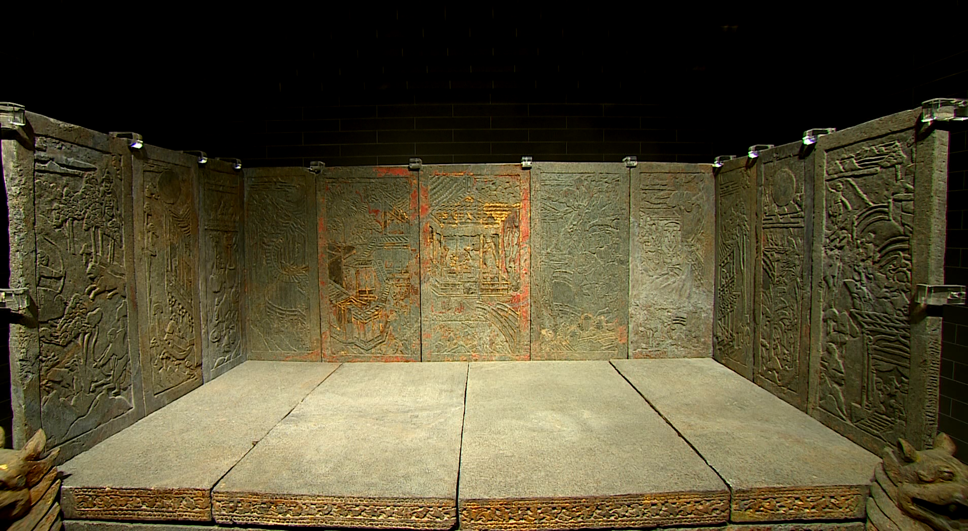 这具石棺床虽然无法识读墓志铭上面用朱砂书写的铭文,墓主人身份、年代等重要的信息不得而知。但雕工精湛、内容丰富,部分饰以红彩、外施贴金的石床榻却是研究我国古代建筑、绘画艺术、民族音乐、服饰特色、生活习惯等的宝贵实物资料。