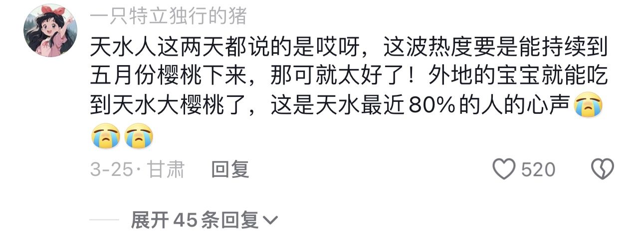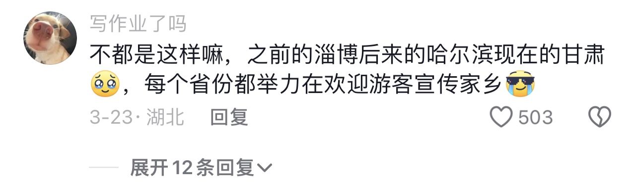 网友@天水有个镇国寺:淄博是自己的淄博,尔滨是自己的尔滨,天水是整个大西北的天水。