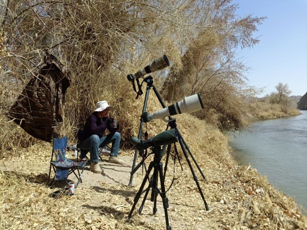 甘肃张掖黑河湿地国家级自然保护区管理局工作人员在监测候鸟(资料图片)。新华社发