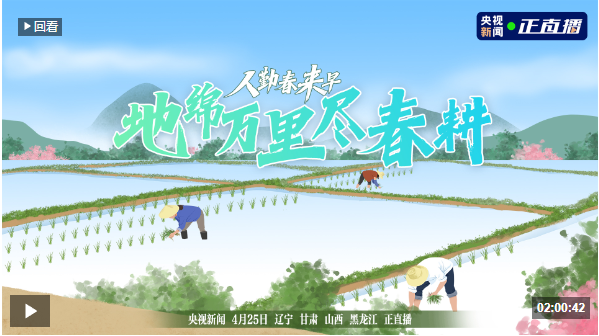 春和景明,全国各地的农业生产进入忙碌时节。今天(4月25日),和央视新闻一起走进田间地头,感受春耕好“丰”光。春耕备耕模式已开启,来辽宁省阜新市彰武县,揭秘沙化耕地如何精准解锁“吨粮田”新目标;万亩苹果花开满园,走进甘肃庆阳苹果园,看“小特产”如何变身乡村振兴的“大产业”;春播春种也有“科技范”,去山西大同看智慧农机驰骋田野,探寻智慧农业的“科技密码”;玉米播种正当时,到黑龙江绥化市的玉米春播现场,看科技如何助力高质量种植的现代化发展。关注直播,一起共绘春耕新图景!(总台记者 姜继媛 张东航 王妍 王皓 邢博 贺威通 董琪琪 任秋宇 刘宇涵 吴亦农 穆冠豪 庆阳融媒 绥化市广播电视台 直播编辑 封琳)