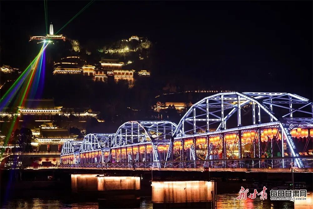 当夜幕降临黄河岸边灯光璀璨