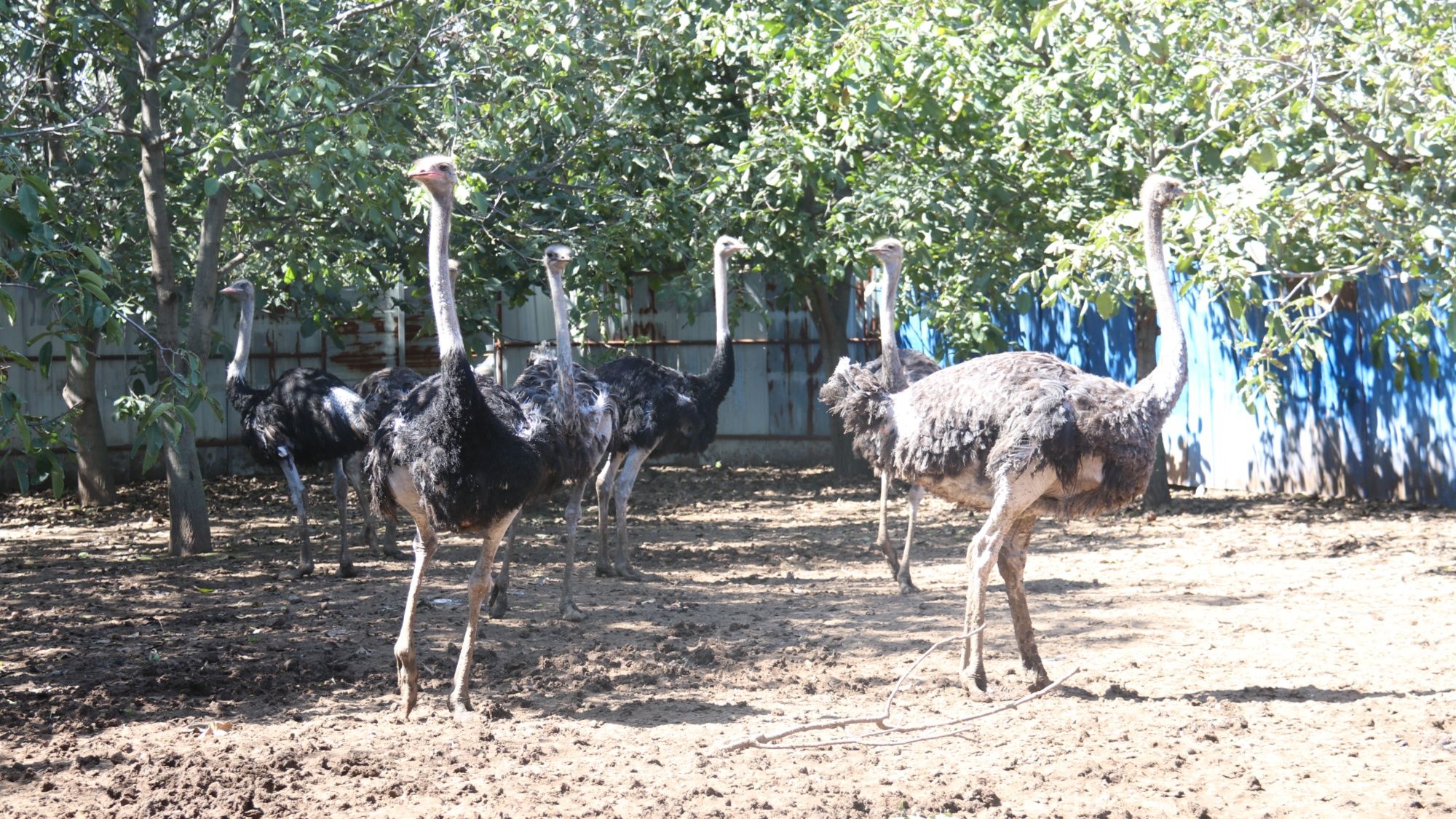鸵鸟在核桃林间悠闲散步(毛娜娜 摄)