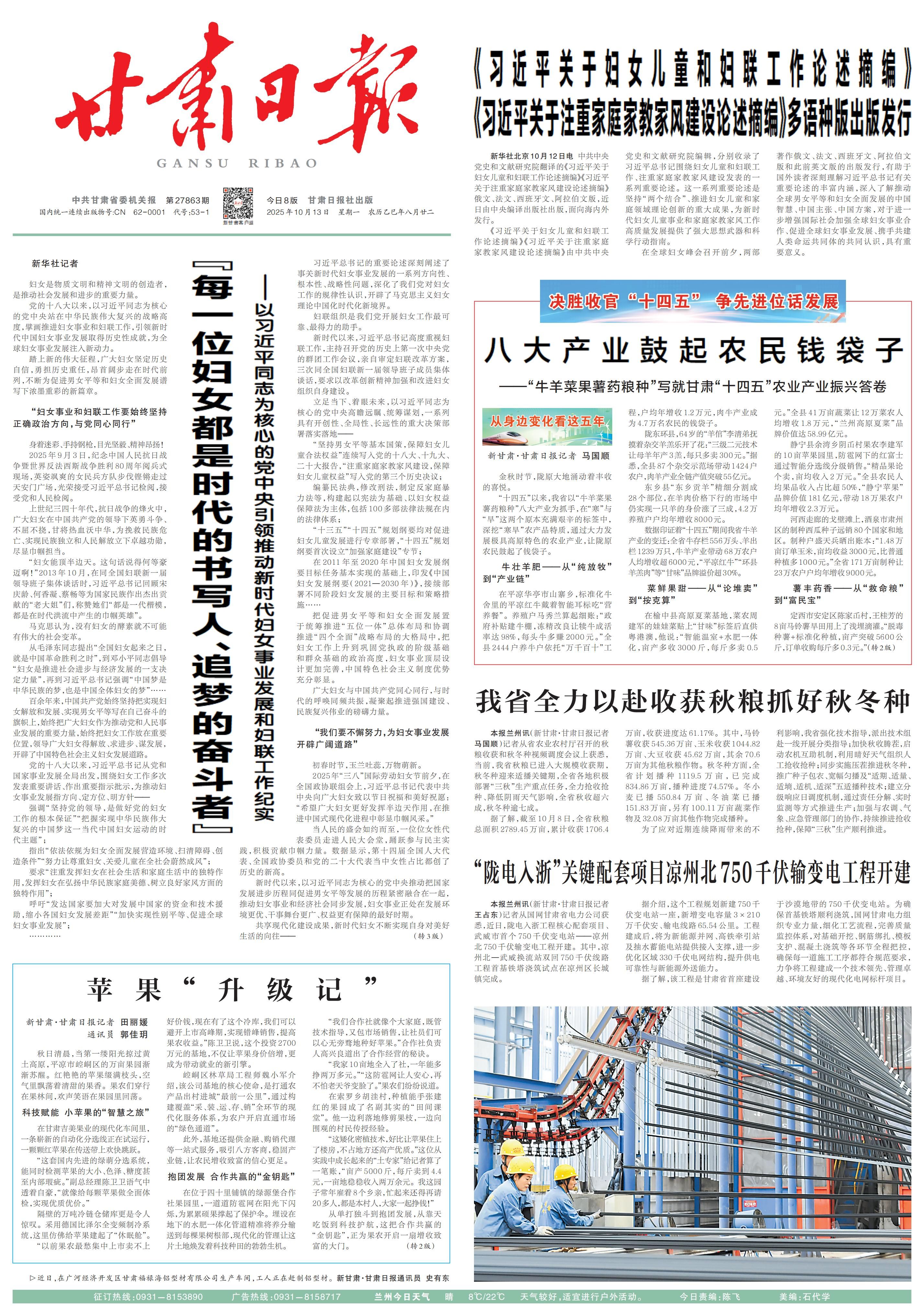 金秋时节,陇原大地涌动着丰收的喜悦。