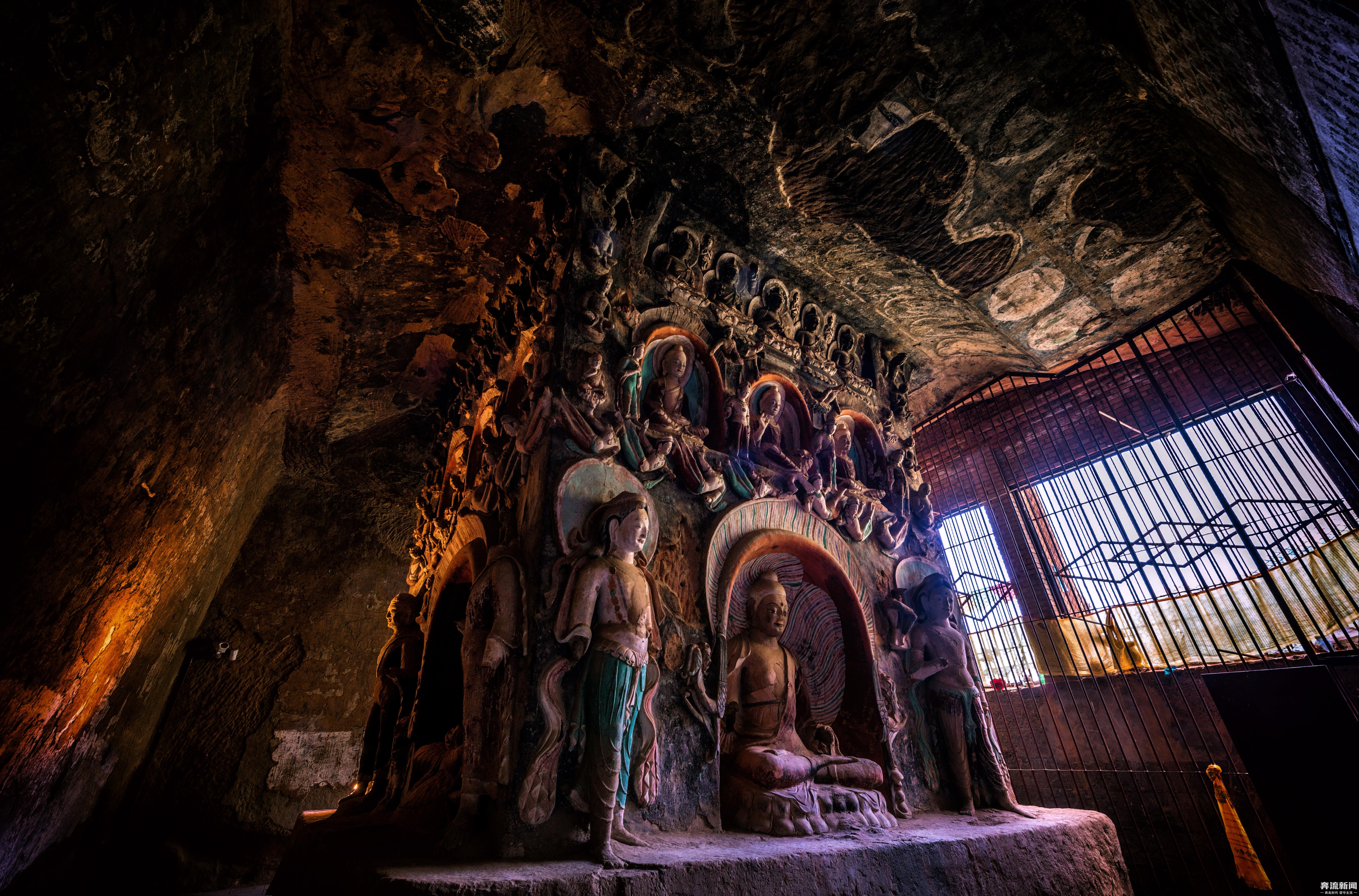值得一提的是,其独特的“高肉雕+彩绘”模式全国仅此一例——飞天大半脱离壁面,圆雕的立体轮廓与浮雕的细腻肌理交融,搭配色彩鲜活的彩绘,既让衣袂褶皱似带气流轻响,又通过矿物颜料留存千年光泽。学界认为,这一技法融合了西域犍陀罗艺术的高鼻深目与庄严感,又融入中国传统线描的灵动,飞天肩上帔帛特意加长的弧度,更尽显中原艺术的飘逸,是丝绸之路多元文化交融的鲜活实证。