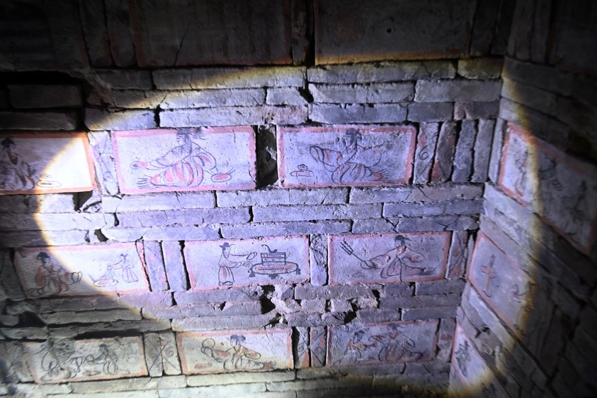甘肃省张掖市高台县魏晋壁画墓内的壁画砖。图源:中国日报网