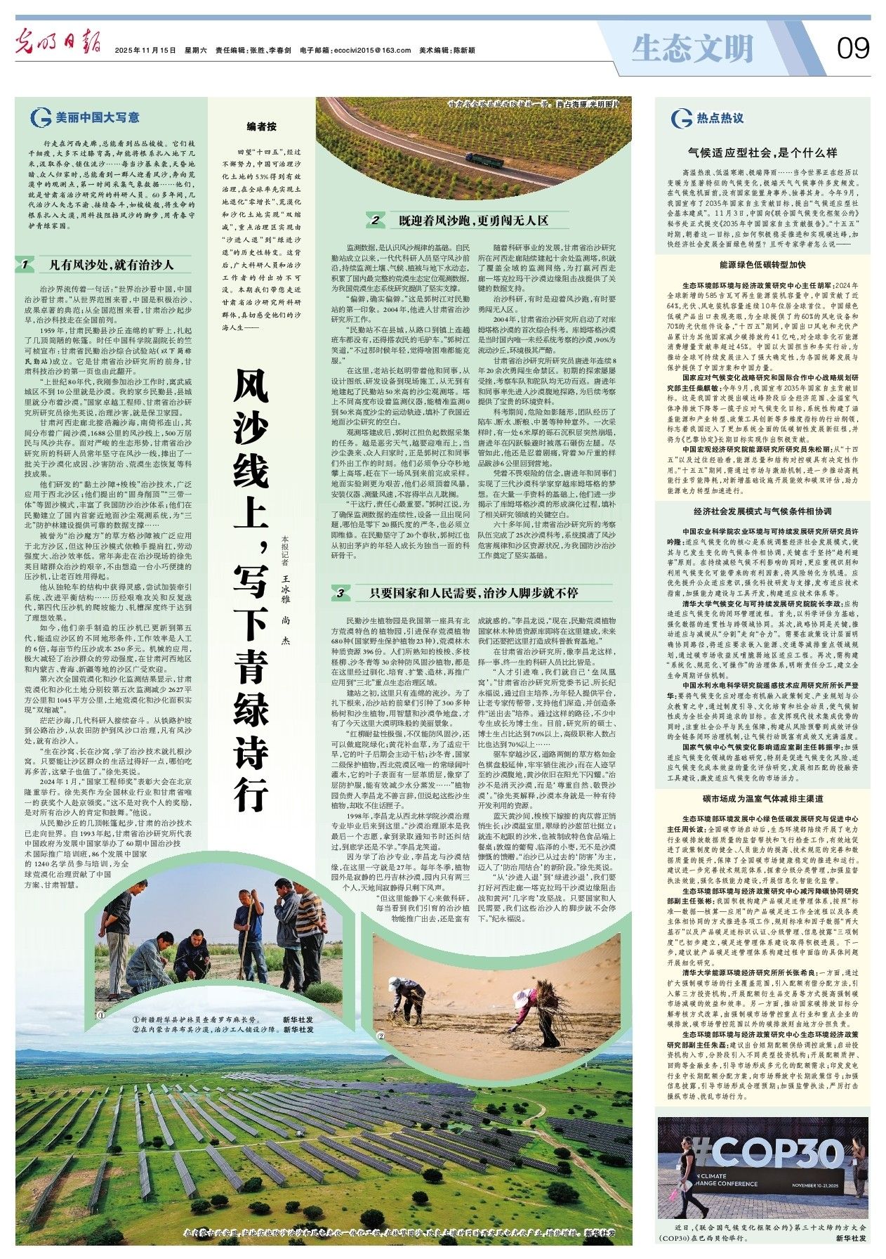 茫茫沙海,几代科研人接续奋斗。从铁路护坡到公路治沙,从农田防护到风沙口治理,凡有风沙处,就有治沙人。