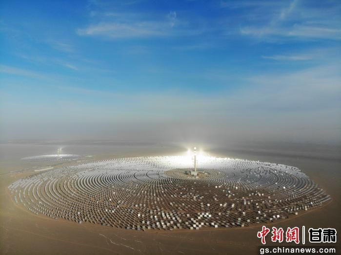 图为甘肃敦煌建成的中国首个百兆瓦级熔盐塔式光热电站。 (资料图)杨艳敏 摄