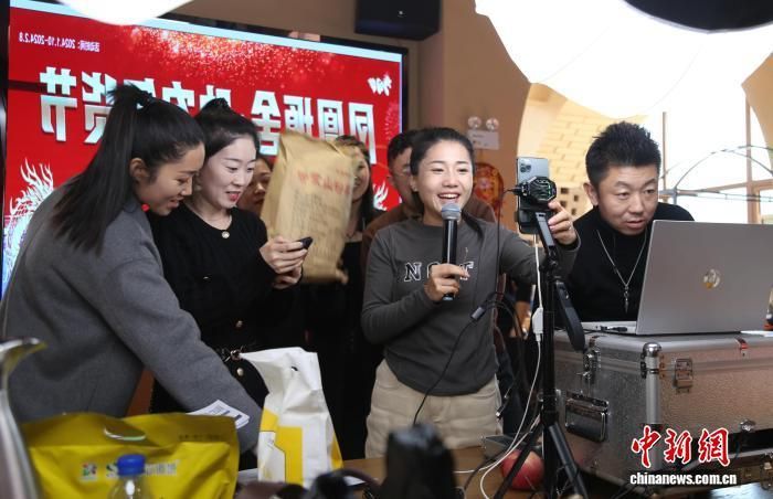 图为电商主播在庆阳市西峰区毛寺村凤凰塬舍·助农年货节活动现场推介农产品。(资料图)盘小美 摄