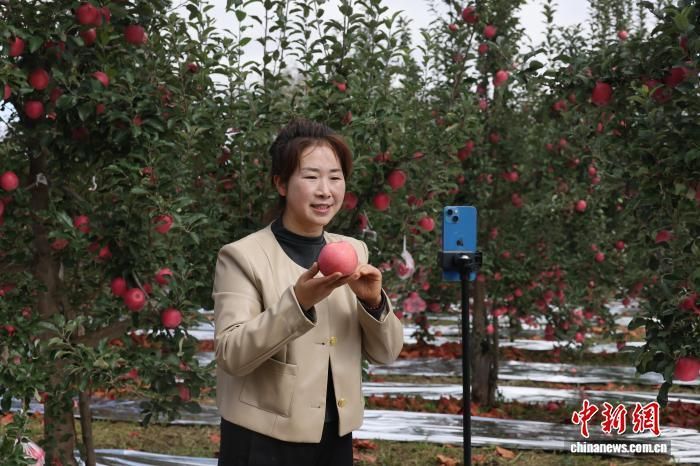 “这是自家果园产的苹果,自然光照成熟,甜脆多汁,喜欢的朋友可以直接下单,我们从种植基地直发……”11月初,在甘肃省庆阳市西峰区董志镇崔沟村一片果园里,种植户秦园元正对着手机屏幕推销苹果。色泽诱人的果子,在她的介绍下,吸引不少粉丝关注下单。