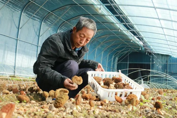 近日,岷县福才食用菌栽培专业合作社菌农正在采收羊肚菌。该合作社充分利用当地得天独厚的光热、水土优势,积极发展羊肚菌种植产业。当前合作社正在抢抓时节,忙着采摘、加工,将新鲜菌菇供应市场。